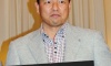 やせて見えるという「キメ顔」で写真撮影に応じた藪恵壹氏