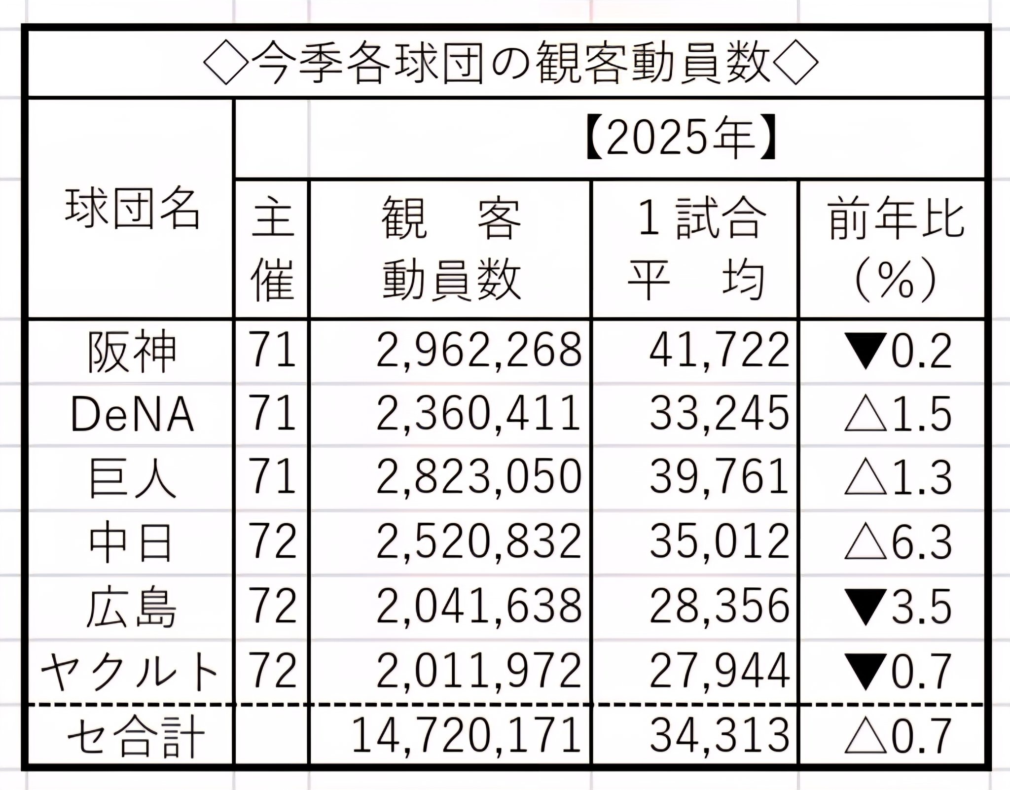 まあ優勝早かったせいもあって1試合平均もちょこっとだけ下がっとる