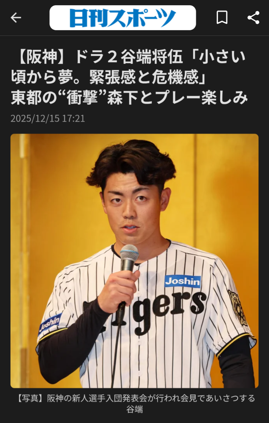 新入団組でガチの阪神ファンは谷端だけやのにそんなんいうなや・・・
